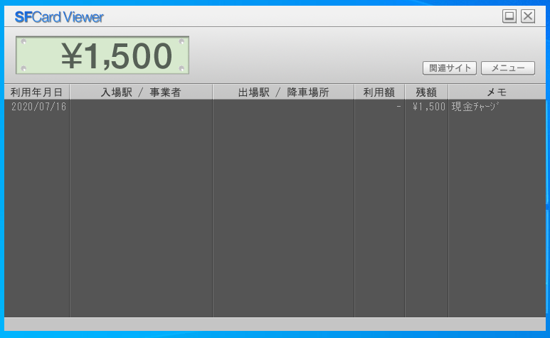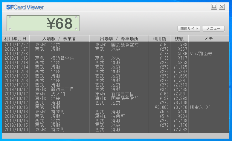 このままでは記帳内容がありませんので、過去に私が使用したPASMOを読み込んでみます。