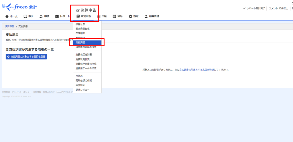 「決算申告」から「支払調書」を選択します。