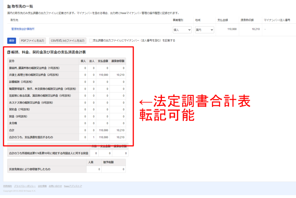 法定調書合計表で必要な数字が集計されました。