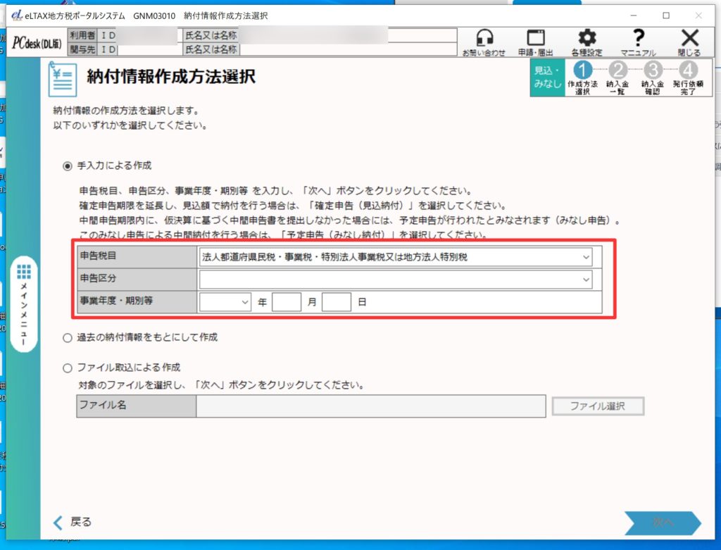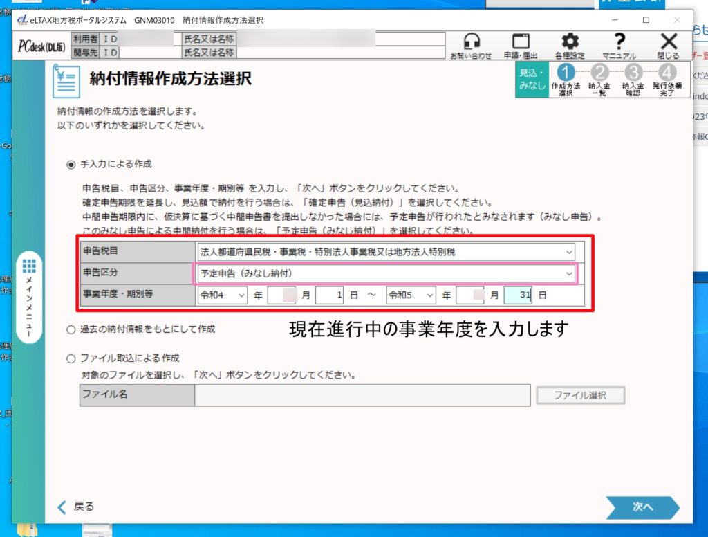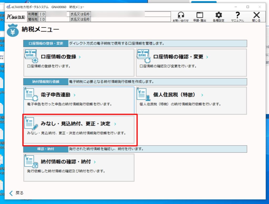 ここではeL-tax(エルタックス)[windowsインストール版]及びインターネットバンキングを利用した法人税住民税、法人事業税等の予定納税の方法をご案内いたします。