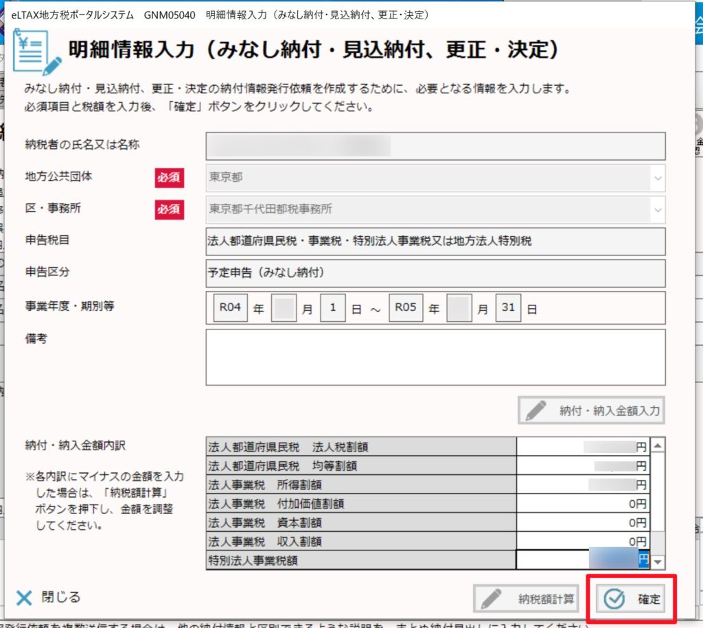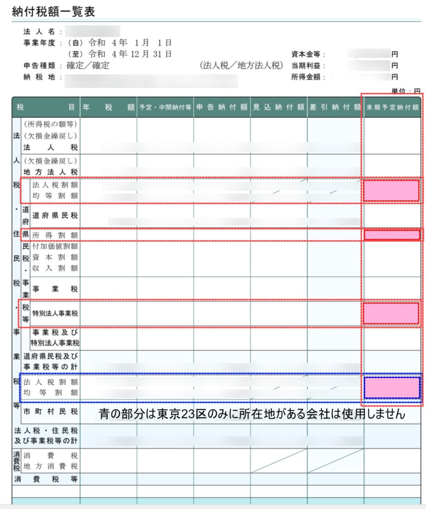 納付税額一覧表を参考にして予定納税の金額を入力することもできます。